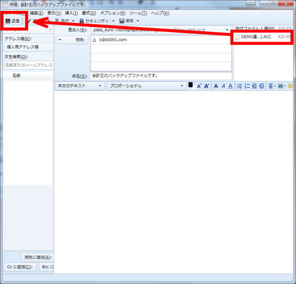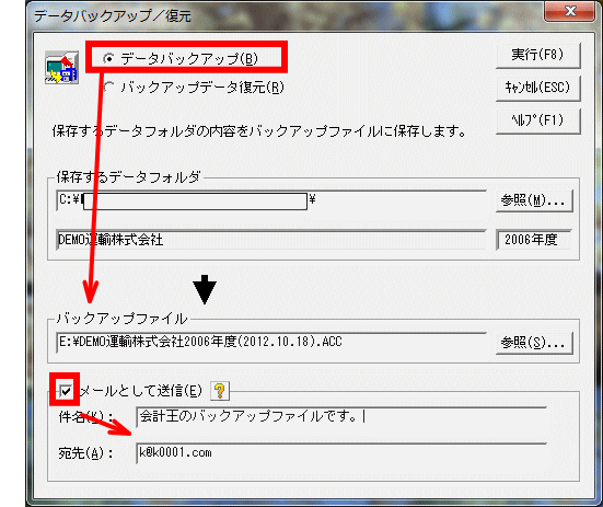 | 会計王データのバックアップと同時にメール添付ファイルを作成します。 | ||||||||||||||||||||||||||||||||||||||||||||