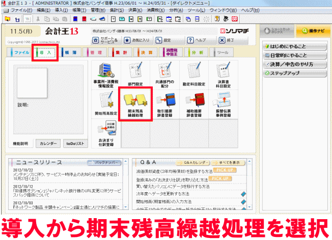 | では、まず最初に導入から期末残高繰越処理を選択します! | ||||||||||||||||||||||||||||||||||||||||||||