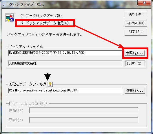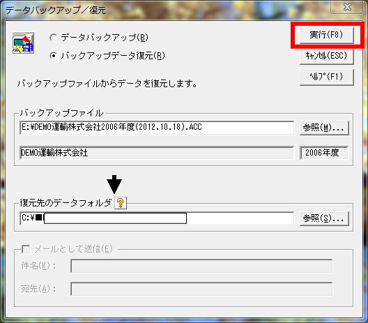 topに戻る![]() ダイレクトメニューの「ファイル」から「バックアップ復元」をクリック topに戻る |