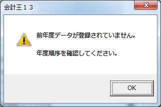では、まず最初に導入から期末残高繰越処理を選択します! ![]() 注意点として、前年度データがパソコンに登録がされていない場合には 下記のようなエラーメッセージが表示されることとなります。 ![]() |
