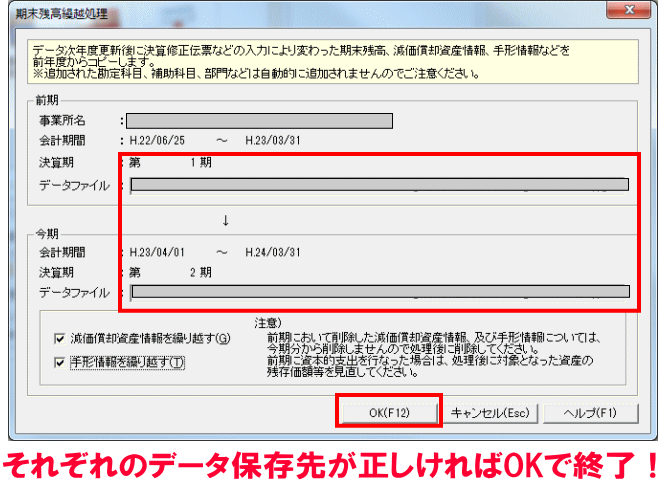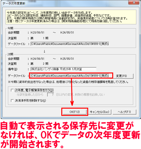 | 保存先などに問題がなければ、そのままOKで次年度更新終了! | ||||||||||||||||||||||||||||||||||||||||||||