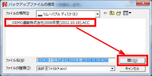 | 会計王のバックアップファイルデータを選択 | ||||||||||||||||||||||||||||||||||||||||||||