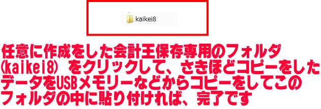 | 実際に上記で保存されているフォルダから会計王データをコピーします! | ||||||||||||||||||||||||||||||||||||||||||||