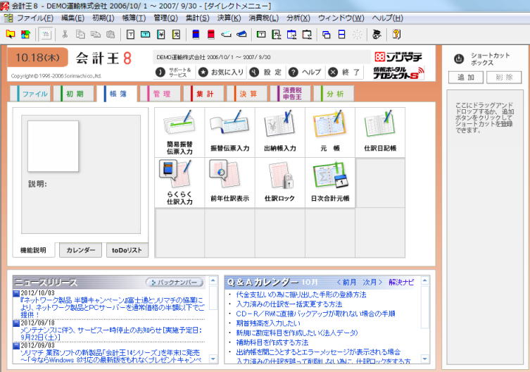 | 会計王に上記のようなダイレクトメニューが表示されていない時は? | ||||||||||||||||||||||||||||||||||||||||||||