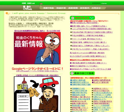 税金のくろちゃん 税金をもっと愉快に!というテーマで四コマ漫画で税金のご紹介をしたり、パソコンやスマートフォンで税金の自動計算をするサイトです。 税理士の立場から、広く一般の方々に税の知識を深めていただく目的で作成をして累計アクセスは32万となっております。 |