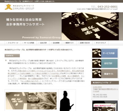 株式会社サムライグループ・千葉県千葉市の黒川税理士事務所(黒川会計)の会計サポート 株式会社サムライグループは、黒川税理士事務所(黒川会計)とタイアップをしながら、会計事務所業務に付加価値を付けることを目的として設立された会社です。 「もっと身近に私たちが…」という気持ちでお客様に接しております。 ですから、会計事務所とのタイアップで会計事務所のレクサスを目指します。 |