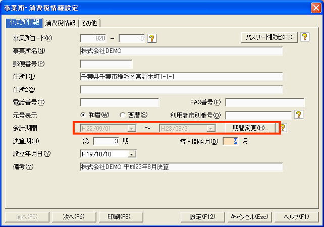 | 会計期間を変更設定するには | |||||||||||||||||||||||||||||||||||
