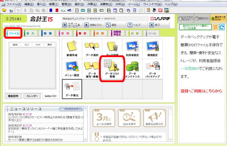 | フォルダを削除するので、【ファイル】から【データリスト管理】へ | ||||||||||||||||||||||||||||||||||||||||||||